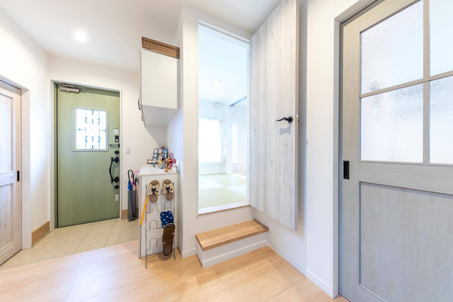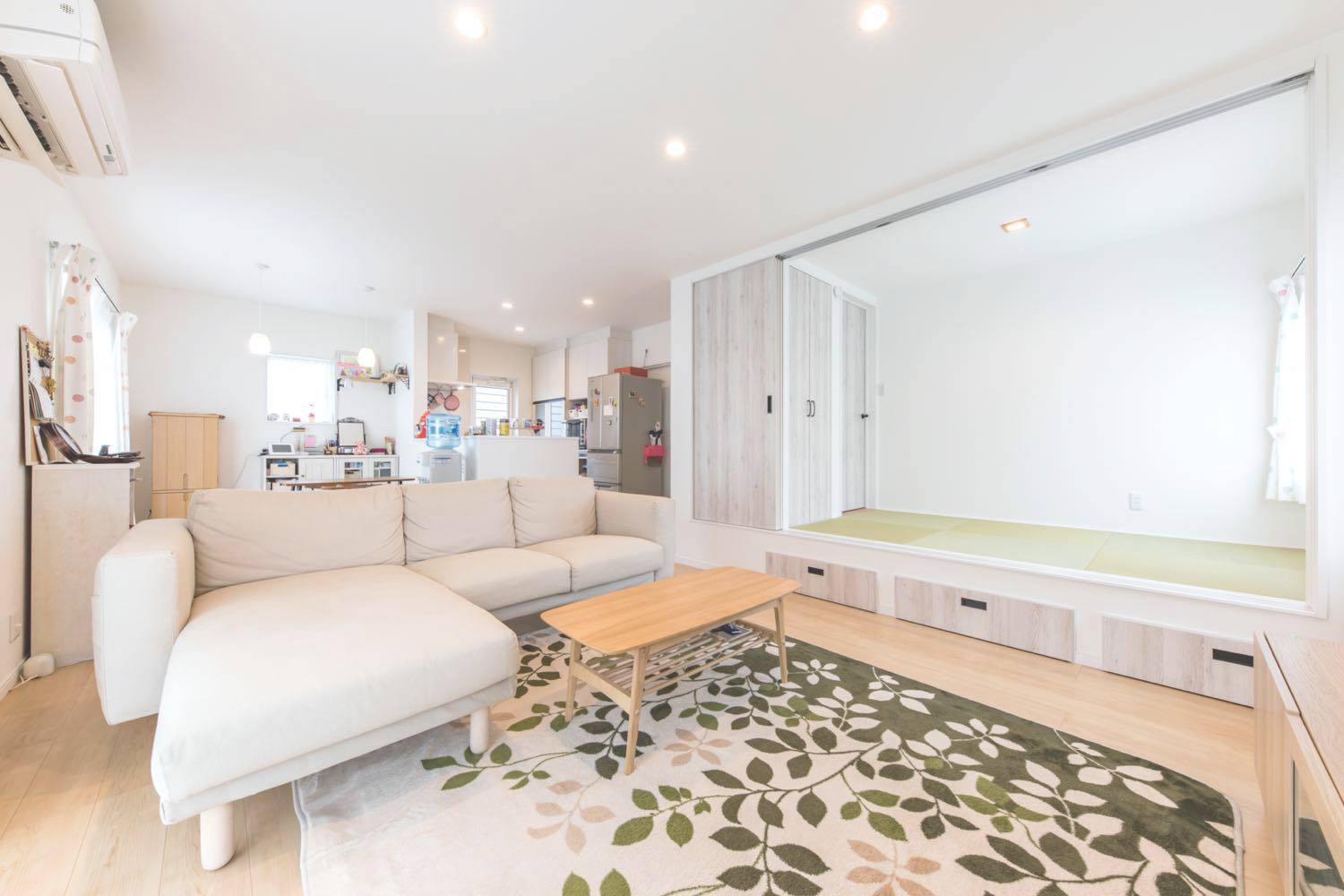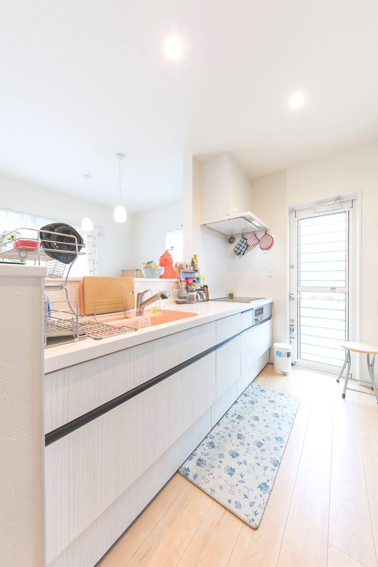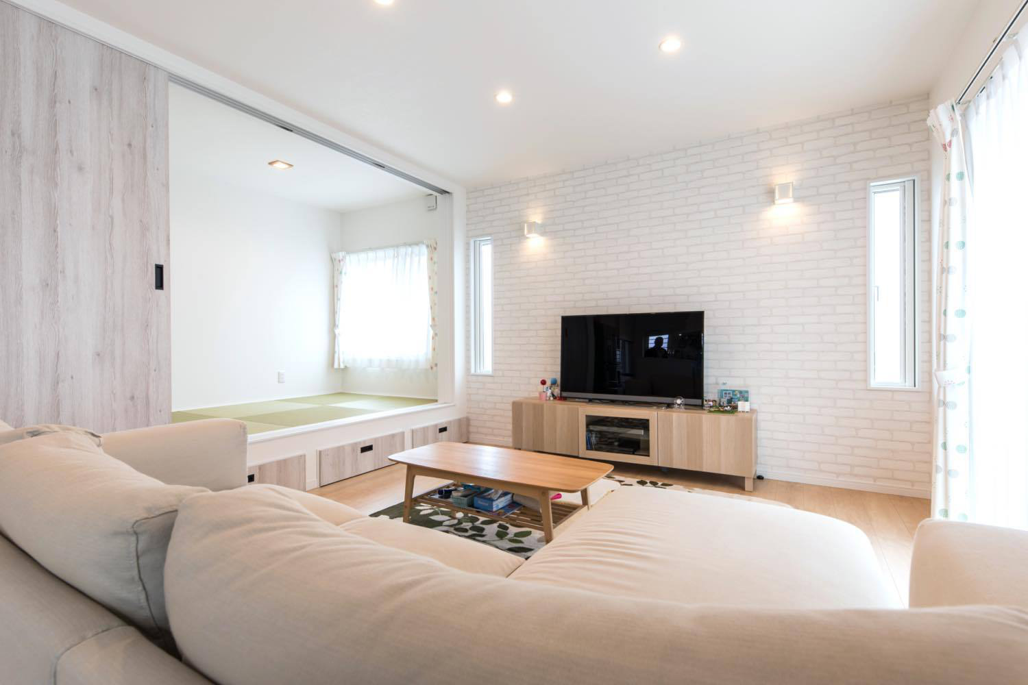 「職場に近くて馴染みがある清水で家を建てようと思っていたんです。他の住宅屋さん?回ってないですね(笑)。」 友人が外構業者で出入りしていたという縁で「いい営業の方がいると紹介され、東海ハウス完全一択。追分の展示場も等身大仕様で、はじめから親近感が沸きました」と話すKさんご夫妻。その選択にも完成した家にも大満足だという。 住宅展示場に行くと、性能面やオプション仕様をフルスペックで見せるモデルハウスが並び、そこで身に余る夢を描くこととなる。いざ家を!と計画を進めると、標準仕様では物足りず、予算をはるかにオーバーした加算住宅か、泣く泣くいろいろなものを諦める減算住宅になったという例はよく耳にする。 しかし東海ハウスは、ゼロエネや高気密高断熱は標準仕様で、さらに畳やタンクレストイレ、ムーブダウン収納やニッチの造作も施主の希望に沿って、等身大プラスアルファの家を実現してくれる。 オプションを進める加算型の家づくりは、かえって過剰スペックの肥満な家を生みかねないが、あまりに減算型では夢も味気も無いというもの。「何を減らされてるのかわらないくらいでした。暮らし方や使い方から逆算した提案をしてくれたので、これがあったらなぁという後悔も一切ありませんでした」と自身の家づくりを振り返った。 希望の立地では予算オーバーだったため、土地を一から探すことになったそうだが、分譲地が計画中の段階から「清水に通える距離、津波の来ない環境」を満たす物件を分譲地が計画中の段階に営業さんが見つけ出し、家づくりはスタート。ハタさんがすぐ近くに住む立地で家を構えることになった。 「営業技術のツルミさんのおかげで、家が完成した後も、本当こうしておけばよかったという事はまったくありませんでしたね。現場のキムキム(木村さん)は同い年ということもあり、こちらの趣味や意図を汲んで、素敵な提案をたくさんしてくれました。家づくりの途中でも、小上がりの前に階段をつけるという仕様変更に柔軟に対応をしてくれて…住んで1年半経ちますが、本当に満足しています。」 とのこと。「ここで何をするの?」という発想で細かな仕様を決めてゆき、暮らし方や使い方から家を作る東海ハウス。ふたりの描く等身大のイメージがつぎつぎと形になっていった。 小物から中のイメージを決めたという1階のトイレと、お互いの趣味のためのスペース。それぞれの部屋は壁紙が変えてあるにも関わらず、不思議と統一感がある。絶対に欲しかったという広い2階のベランダやピンクのシンク、淡いグリーンの玄関扉に薄いブルーの水回りのドア、趣味のものを飾るニッチやご主人希望の本棚にウォークインクローゼット。そして「金額が追加になってでも!」という2階のトイレの壁紙。お互いの希望を散りばめたインテリアを「ツルミさんだからまとめてくれた」と、設計に対しても満足の様子。取材中に腰掛けた小上がりの畳部屋は、ソファと同じ高さに設けられ外からも直接アプローチが可能。友人の子ども達にも大人気だ。ドアで区切ればそこは子どもだけの秘密基地にもなるが、大人が腰掛けるのにちょうどよいスキップフロアでもある。 取材中の二人のにこやかな表情と営業さんとの漫才のような掛け合いが、施主と施工者の信頼関係を物語っていた。 大好きなミニ四駆と食玩が並ぶ趣味の家で、ふたりは今日も笑顔で暮らしている。
