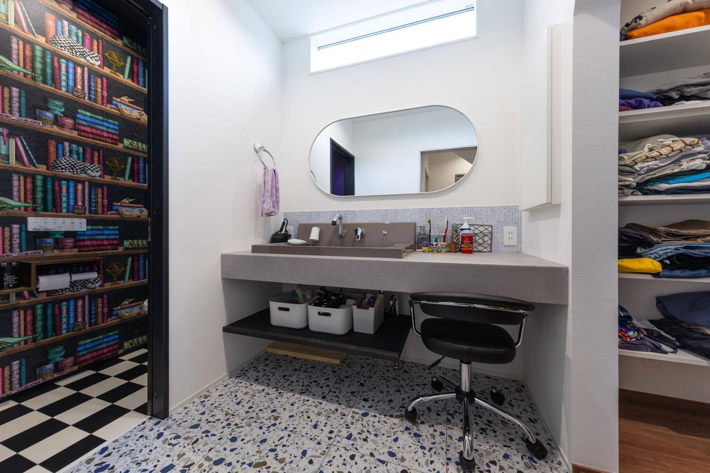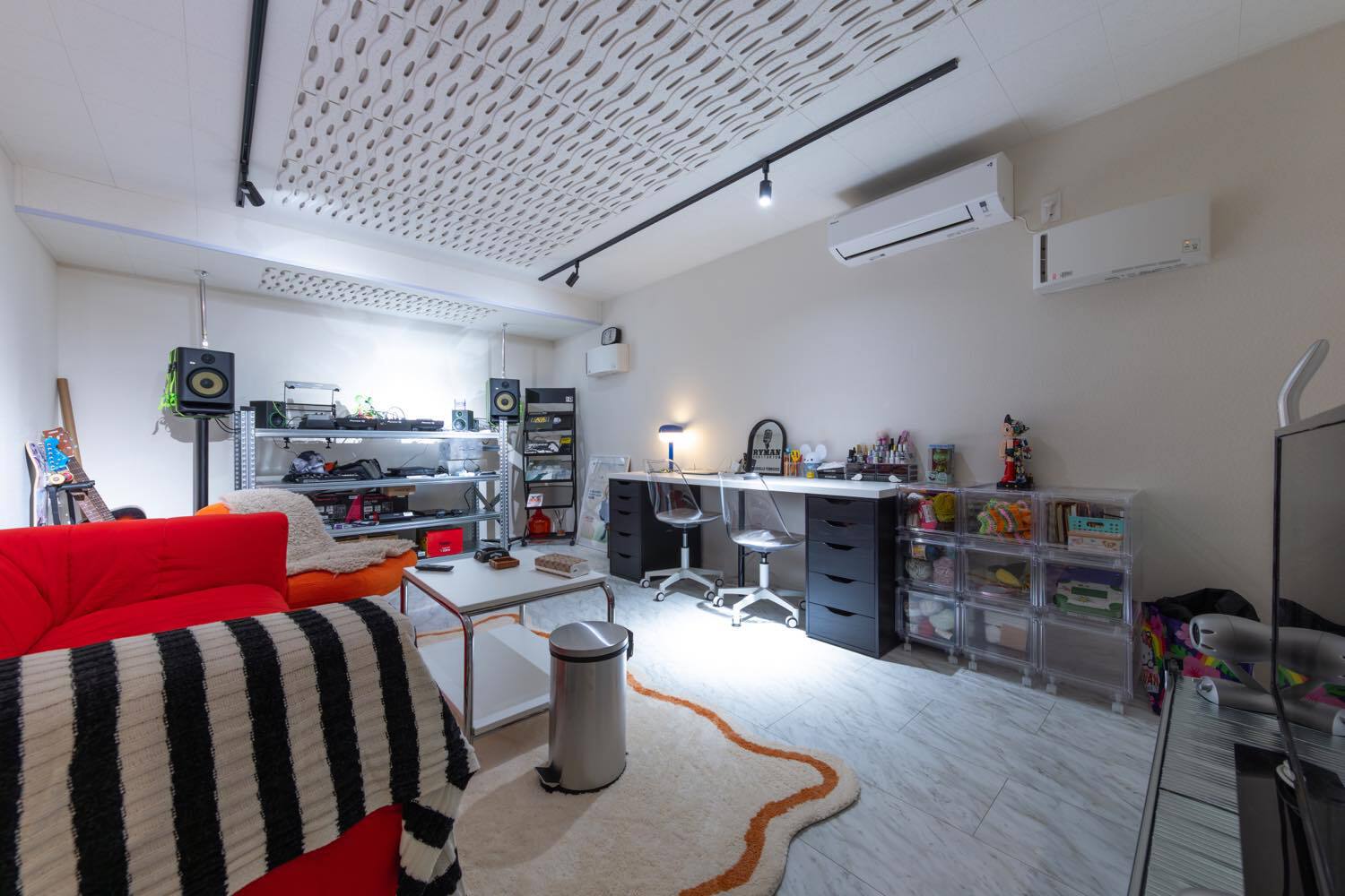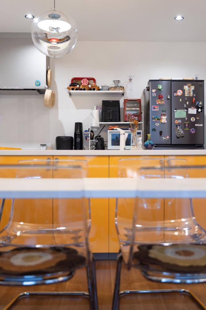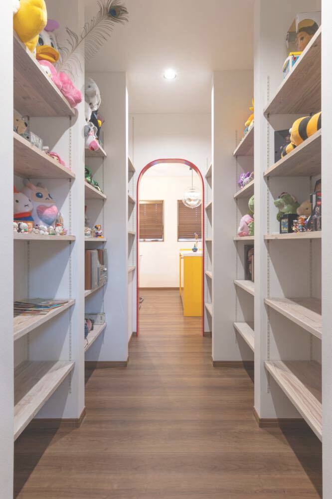 M邸は夫妻のセンスと暮らしやすさを見事に融合させた一棟だ。玄関近くのウォークスルークローゼットが身支度・片付け時間を短縮。毎日好きなグッズを眺められるよう、ディスプレイルームはあえて1階の中心に配された。 ご主人念願の防音室から階段下のヌック、カバードポーチ、ドッグラン仕様の庭など思い思いに過ごせるスペースも形になった。将来的な親との同居も想定。今も未来も、明るい気分にさせてくれる一棟だ。