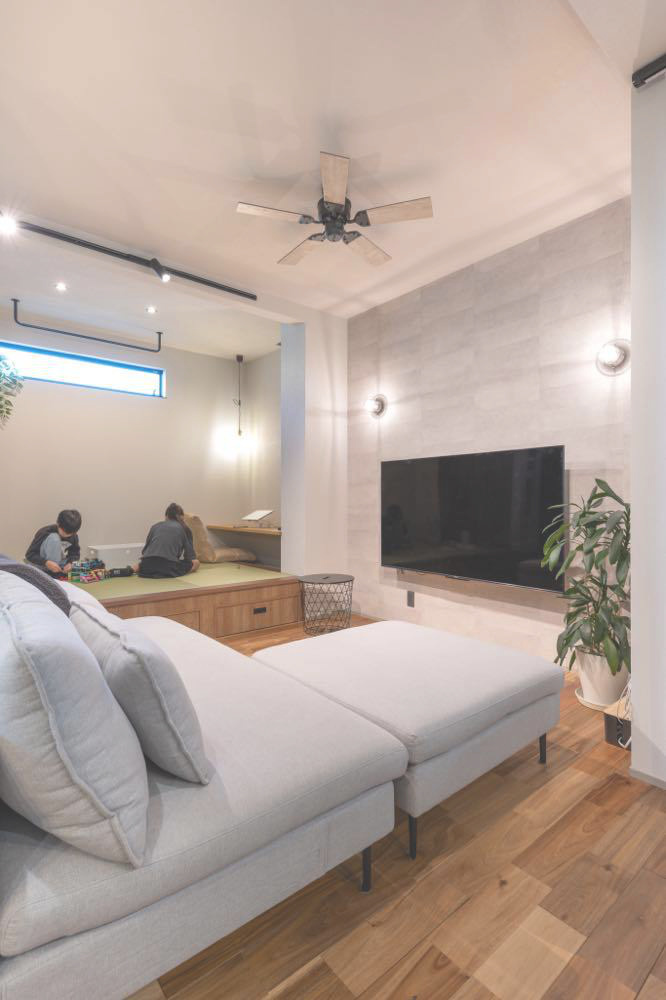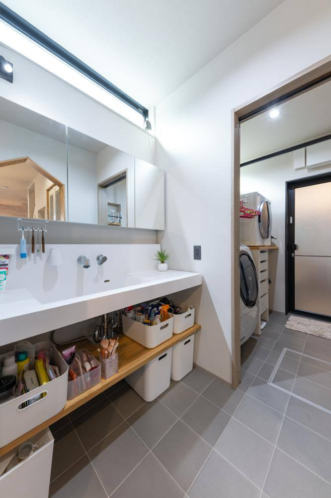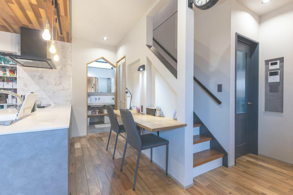 洗練された外観、どの方向も絵になる空間、つながりと細やかな収納の両立。子育て世代が参考にしたいアイデアが凝縮しているが、それもそのはず、F邸は『東海ハウス』のスタッフの住まいだ。優れた性能に加え、LDKと水回りの温熱環境が一体となる間取りも人気の仕様。実績から導かれた設計により、夏も冬も快適な住空間が提供されている。
