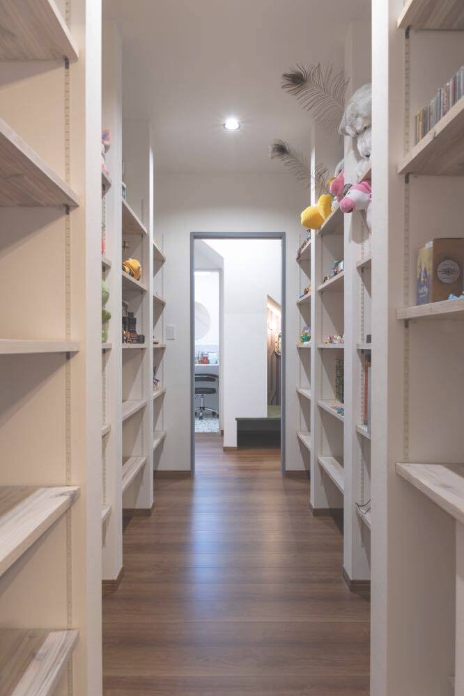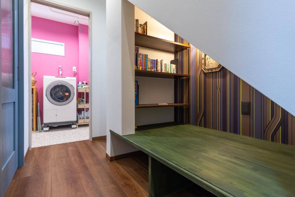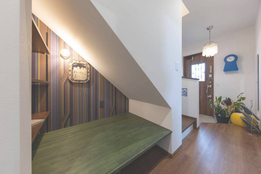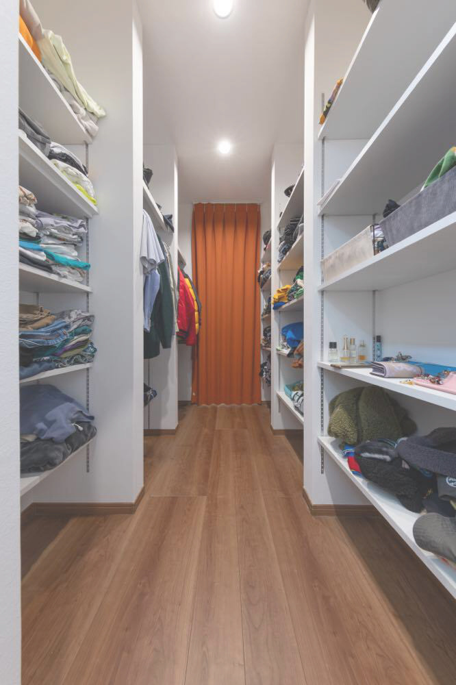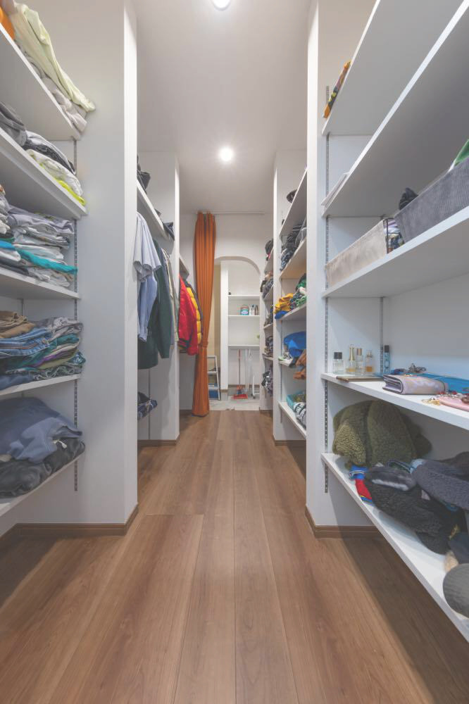 M邸は夫妻のセンスと暮らしやすさを見事に融合させた一棟だ。玄関近くのウォークスルークローゼットが身支度・片付け時間を短縮。毎日好きなグッズを眺められるよう、ディスプレイルームはあえて1階の中心に配された。 ご主人念願の防音室から階段下のヌック、カバードポーチ、ドッグラン仕様の庭など思い思いに過ごせるスペースも形になった。将来的な親との同居も想定。今も未来も、明るい気分にさせてくれる一棟だ。